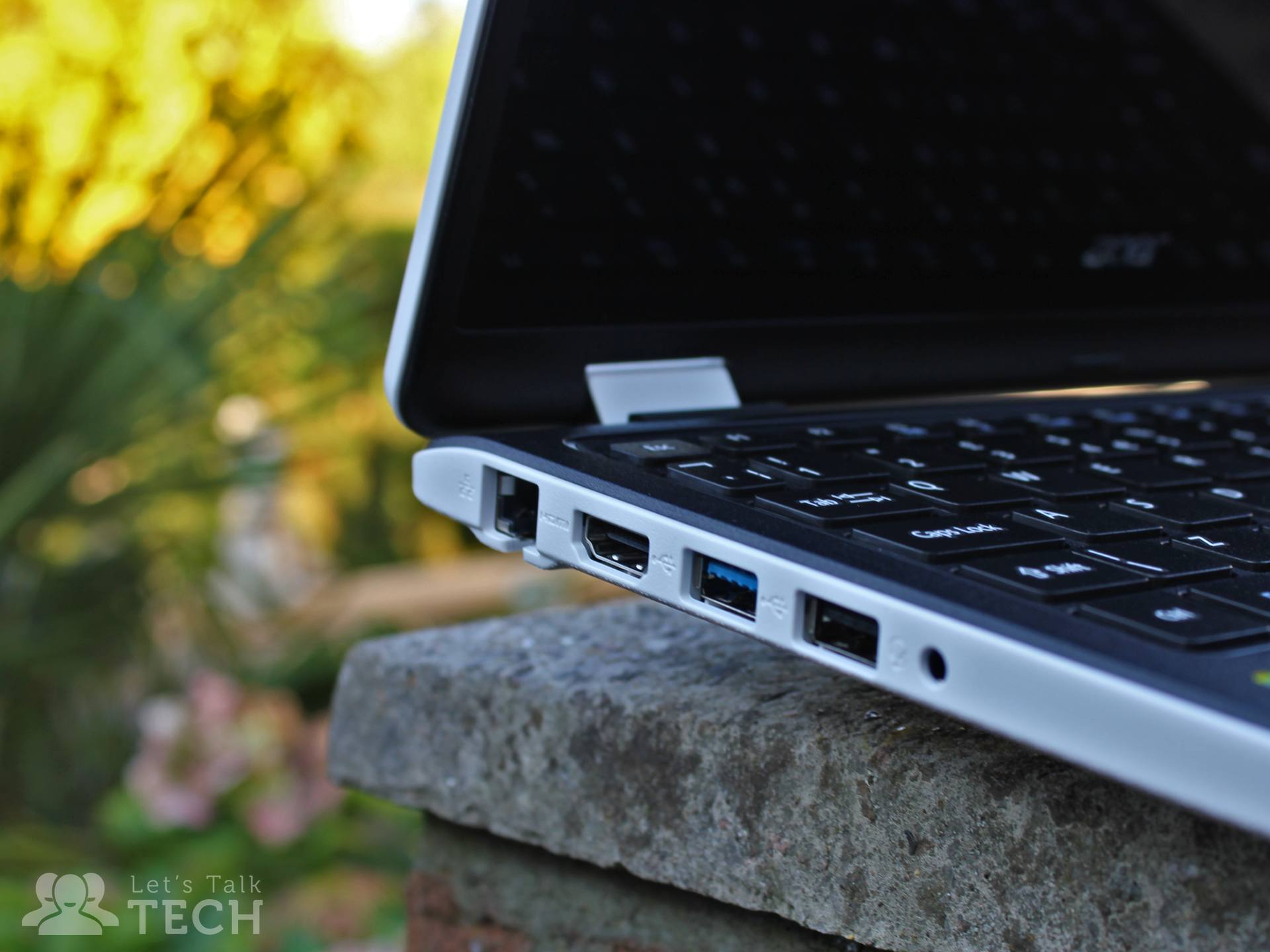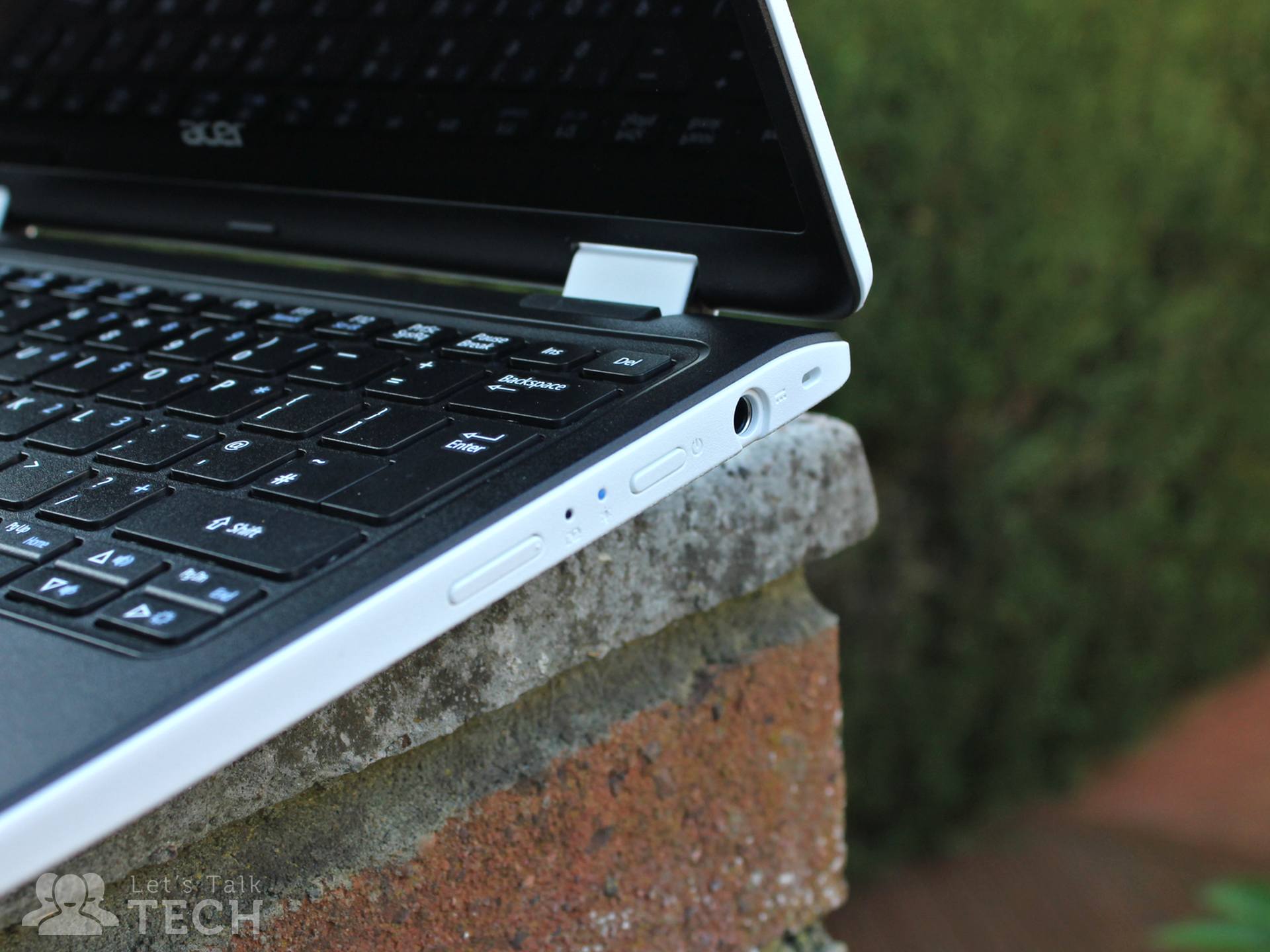 On the left flank of the Acer Aspire R11 you’ll find one ethernet and one HDMI port, two USB ports, and an audio jack. Flip to the right side and there’s the power button, a volume rocker and a port for the power cable. Acer have cleverly squeezed in an SD card slot on the base of the laptop, but directly under the display. It’s unusual and not very eye catching, so you’ll need to look for it!