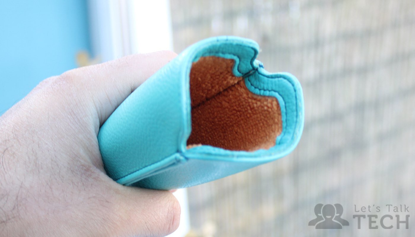Open up the case and you’ll find a nicely textured red synthetic suede material, along with a single credit card slot.